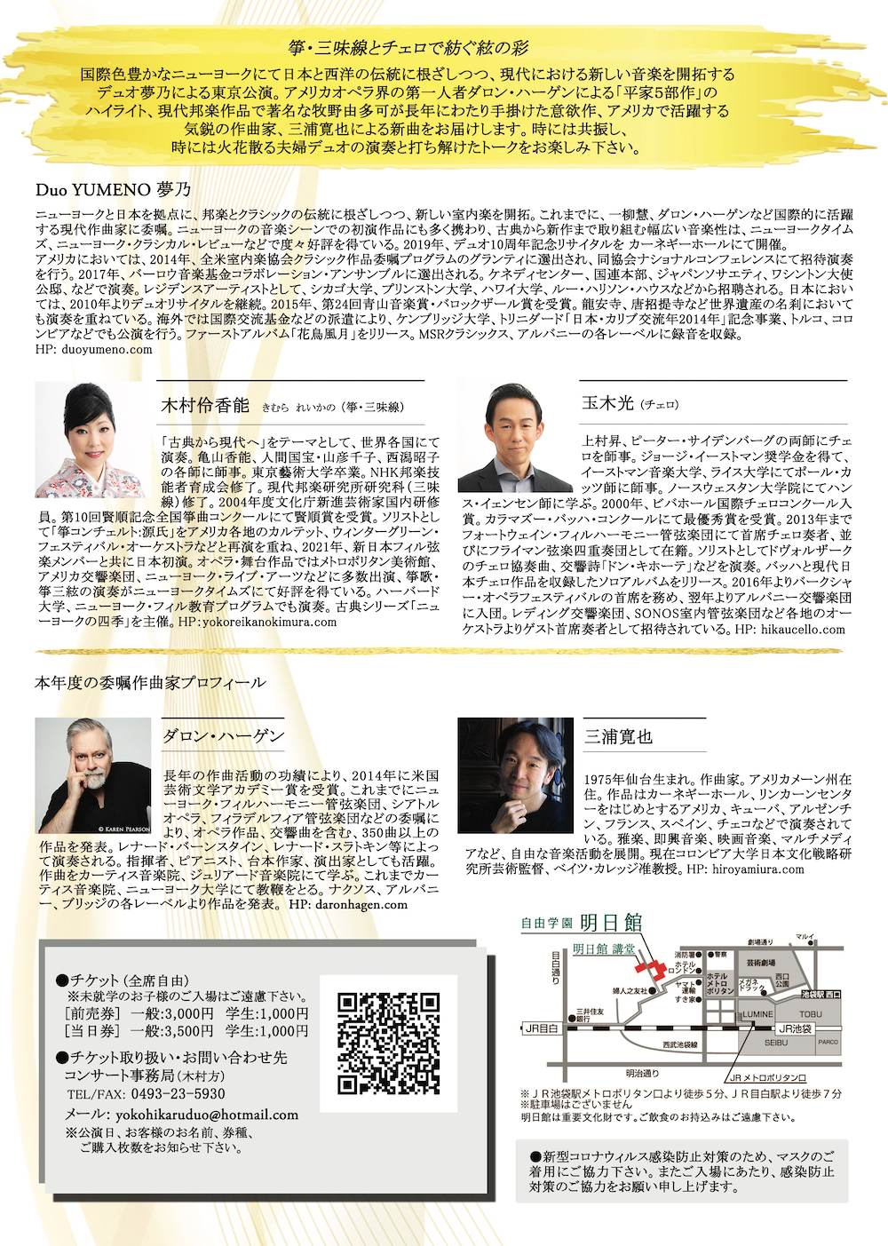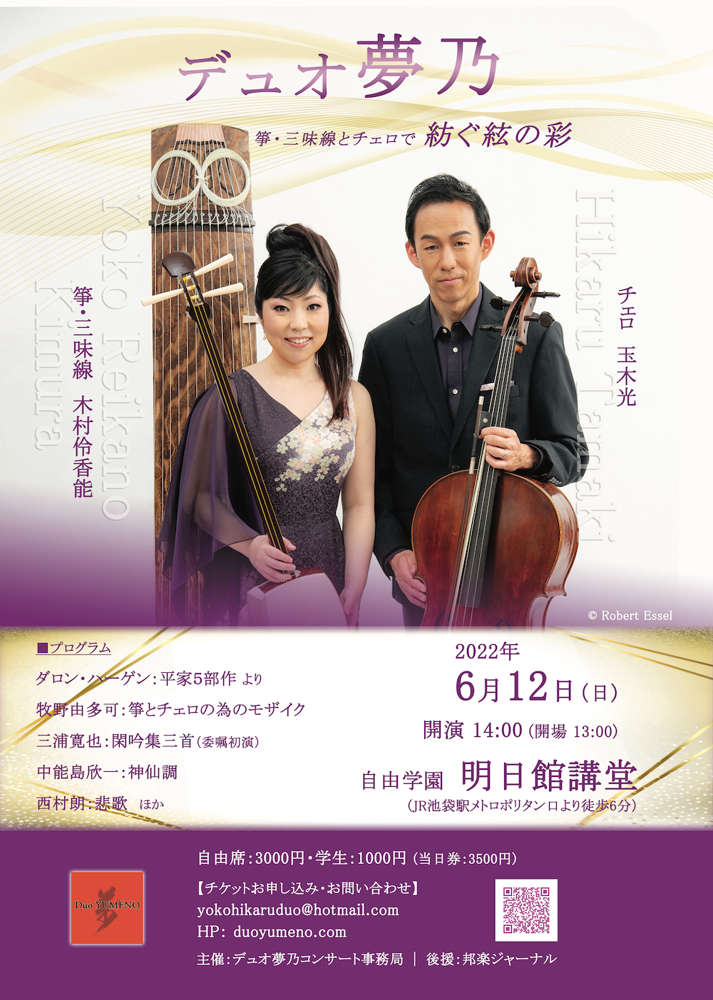 E-mail: info@duoyumeno.com (デュオ夢乃コンサート事務局)