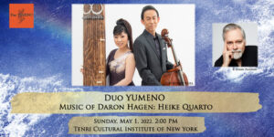 Duo YUMENO (Yoko Reikano Kimura, Japanese koto and Hikaru Tamaki, cello) will perform Heike Quarto, a four-piece suite composed by Daron Hagen – one of the most prominent American opera composers – that was commissioned by the duo between 2015 and 2018. This concert will be the first opportunity to hear the entire suite in a live concert setting.