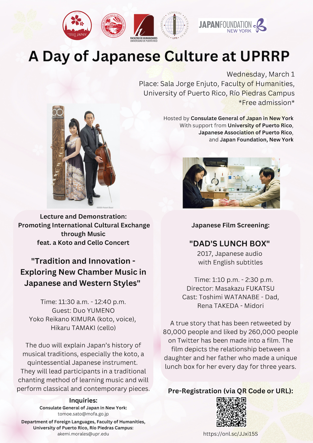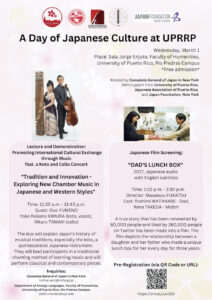 Duo YUMENO will perform at a reception held by the Consulate General of Japan in New York in honor of the newly appointed Japanese Honorary Consulate General in San Juan on Wednesday, March 1st.