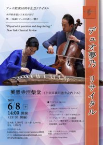 Duo YUMENO will have annual Kyoto recital at the historic Kosho-ji Temple in Kyoto. Please enjoy the serene atmosphere at the temple and their music!