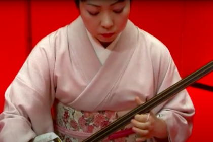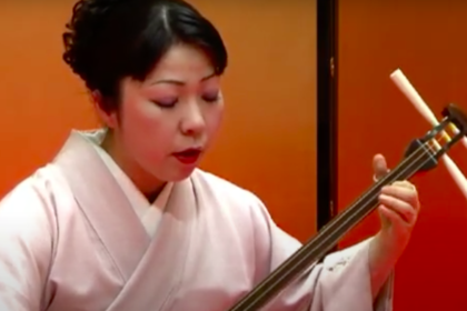 Banshiki-chō for solo shamisen, Mov. Ⅰ (composed by Kin’ichi Nakanoshima) Yoko Reikano Kimura, sangen (shamisen)Recorded by Traditional Digital Music Library, Senzoku Gakuen College of Music