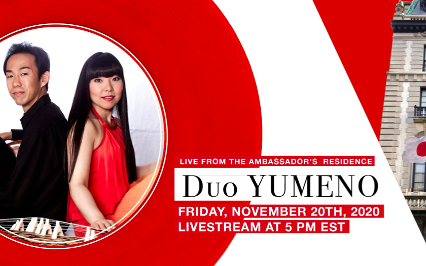 Duo YUMENO was honored to be featured at the concert series, “Live from the Ambassador’s Residence” presented by the Consulate General of Japan in New York on Friday, November 20th. The performance was livestreamed to the Consulate General of Japan in New York’s Official Facebook page. (12/30/20)