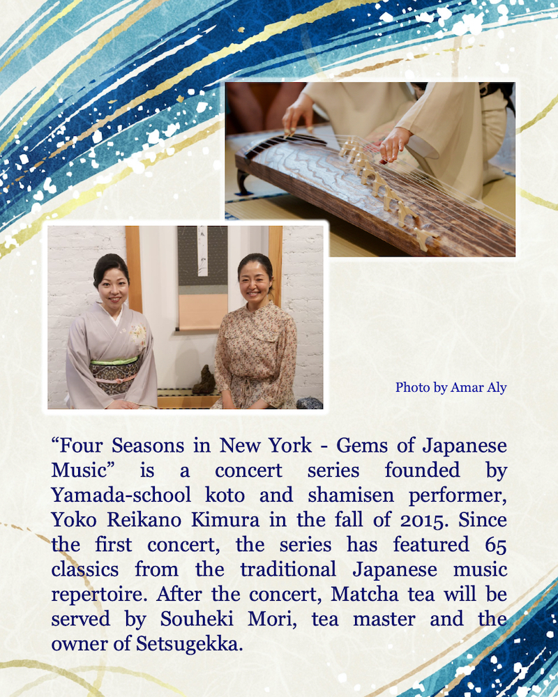 This concert series is co-presented by Yoko Reikano Kimura and Setsugekka, and supported by Hogaku Journal.
